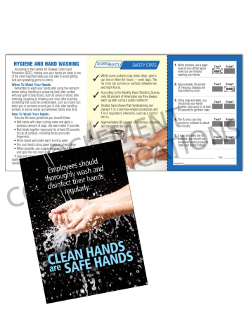 Table-top Tent Cards: To ensure consistent safety messaging throughout the workplace, Table-top Tent Cards can be displayed in break rooms, cafeterias or anywhere else that employees frequent. Each Table-top features a mini-version of the 17" by 22" poster, with important safety tips on the side reverse side.